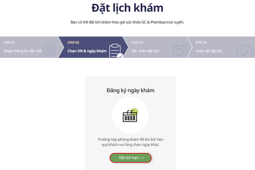 Truy cập website: https://gc-phenikaa.com/dat-lich/